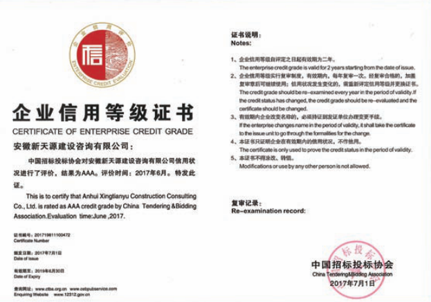 企業(yè)信用等級3A